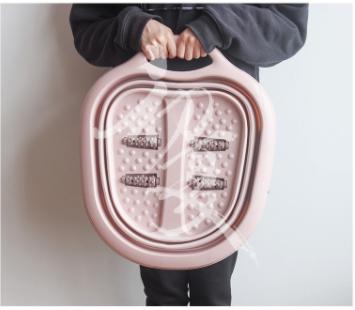 按摩足浴盆 (可折叠),使用加厚PP材質,不怕高溫,使用更持久;盆底均勻按摩珠,刺激腳步穴部,緩解疲勞;盆底按摩滾輪,促進腳底血液循環。細節防滑把手,倒水方便,握感舒適,可以懸掛收納,端水穩定。凳腳折疊伸縮,使用靈活,附有凳腳保護套,防滑更耐磨蹭;折叠後僅有6.5cm,方便存放,節省空間。展開桶深高達20cm,底部加高2cm,減少地面的傳熱,溫度保持得更久。